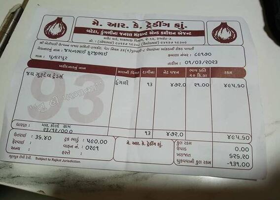 Rajkot News: રાજ્યમાં ડબલ એન્જિન સરકારથી ભાવનગરના ખેડૂતો ભારે નારાજ થયા છે. ખેડૂતોને ડુંગળીના પ્રતિ કિલો અઢીથી ત્રણ રૂપિયા ભાવ સતત બે મહિનાથી મળી રહ્યો છે, જેના કારણે ધરતી પુત્ર ખેડૂત દિવસેને દિવસે આર્થિક દેવાના ડુંગર તળે દબાઈ રહ્યા છે. આ દરમિયાન કાલાવાડના ખેડૂતે ડુંગળી વેચી તો વેપારી પાસેથી રૂપિયા લેવાના બદલે ચૂકવવાના થયા છે. જેનું બિલ સોશિયલ મીડિયામાં વાયરલ થયું છે.