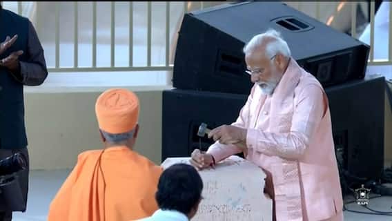 BAPS Hindu Temple: વડા પ્રધાન નરેન્દ્ર મોદીએ બુધવારે અબુ ધાબી, સંયુક્ત આરબ અમીરાત (યુએઈ)માં પ્રથમ BAPS હિંદુ મંદિરના ઐતિહાસિક ઉદ્ઘાટન બાદ હથોડી અને છીણીનો ઉપયોગ કરીને પથ્થર પર "વસુધૈવ કુટુમ્બકમ" શબ્દો કોતર્યા હતા. પીએમ મોદી મંદિરમાં કારીગરો અને બાળકો સાથે પણ વ્યસ્ત જોવા મળ્યા હતા.