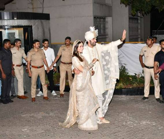 આલિયા અને રણબીરના લગ્ન પરિવારના સભ્યો અને નજીકના મિત્રોની હાજરીમાં થયા હતા. 5 વર્ષથી વધુ સમયથી રિલેશનશિપમાં રહેલા આ સ્ટાર કપલે પંજાબી રીતિ-રિવાજથી લગ્ન કર્યા હતા. મહેમાનો રંગીન કોઓર્ડિનેટેડ પોશાક પહેરીને આવ્યા હતા. જ્યારે પરિવારના સભ્યો ગુલાબી કલરના પોશાકમાં જોવા મળ્યા હતા, ત્યારે રણબીર અને આલિયાના મિત્રો સફેદ અને ગોલ્ડ કલરમાં આવ્યા હતા.