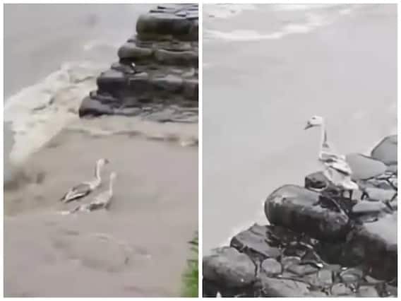 વાઈરલ થઈ રહેલી ક્લિપમાં મુશળધાર વરસાદ બાદ આવેલા પૂરને કારણે બે બતક પાણીના જોરદાર પ્રવાહમાં વહેતી જોઈ શકાય છે. પાણીનો પ્રવાહ એટલો ઝડપી છે કે તેમાં ફસાઈને કોઈપણ વ્યક્તિનું મૃત્યુ થઈ શકે છે. આ દરમિયાન તેમાં ફસાયેલી બે બતક પોતાનો જીવ બચાવવા માટે સંઘર્ષ કરતી જોવા મળે છે.
