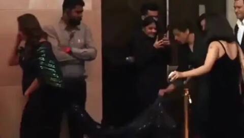નવી દિલ્હીઃ બૉલીવુડના કિંગ ખાન એટલે કે શાહરૂખ ખાનનો એક રૉમેન્ટિક વીડિયો વાયરલ થઇ રહ્યો છે, આજકાલ ફિલ્મોથી દુર શાહરૂખ પોતાની પત્ની ગૌરી ખાન સાથે એક ઇવેન્ટમાં પહોંચ્યો હતો, અહીં કિંગ ખાને પત્ની સાથેનો પ્રેમ અને સાંભળનું એક ઉહાહરણ પુરુ પાડ્યુ હતુ. ખરેખરમાં, કિંગ ખાન પત્ની ગૌરી ખાન સાથે એક ઇવેન્ટમાં પહોંચ્યો હતો. આ દરમિયાન ગૌરી ખાને એક લાંબુ ગાઉન પહેર્યુ હતુ, જ્યારે ચાલે ત્યારે તે નીચે ઢસડાતુ હતુ. આ જોઇને પાછળ ચાલી રહેલા એક્ટર શાહરૂખ ખાને પત્નીનુ ગાઉન પાછળથી પકડીને ઉઠાવી લીધુ હતુ. જોકે, મીડિયા અને કેમેરામેન સામે હોવાથી ગૌરી ખાને ઇશારો કરીને શાહરૂખને ગાઉન નીચે મુકવા કહ્યું હતુ. બન્નેના રૉમેન્ટિક લવનો આ વીડિયો હાલ સોશ્યલ મીડિયામાં ખુબ વાયરલ થઇ રહ્યો છે. ઇવેન્ટમાં ગૌરી ખાને બ્લેક મેટાલિક કલરનું લાબું ગાઉન પહેર્યુ હતું, વળી શાહરૂખ ખાને પણ બ્લેક લૂક વાળો શૂટ પહેર્યો હતો.