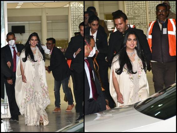 ઈશા અંબાણી ટ્રેડિશનલ પોશાક પહેરીને પહોંચી હતી. ઈશા એરપોર્ટ પર ચમકતા ડાયમંડ નેકલેસ, ક્રીમ કલરના આઉટફિટમાં અને ફુલ સ્ટાઇલમાં જોવા મળી હતી. આ દરમિયાન આનંદ પીરામલ પણ તેમની સાથે બ્લેક સૂટ બૂટમાં જોવા મળ્યા હતા.