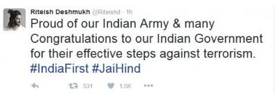 #SurgicalStrikes: બોલીવુડ સેલેબ્સ અને ક્રિકેટરોએ કર્યુ ટ્વિટ, જુઓ તસવીરો