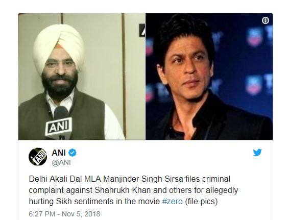 મુંબઈઃ દિલ્હીના અકાલી દળના ધારાસભ્ય મનજિંદર સિંહ સિરસાએ શાહરૂખ ખાન અને અન્ય લોકો સામે ફરિયાદ નોંધાવી છે. મનજિંદરે આરોપ લગાવ્યો છે કે ફિલ્મ ‘ઝીરો’માં શીખોની લાગણીને ઠેસ પહોંચાડવામાં આવી છે.