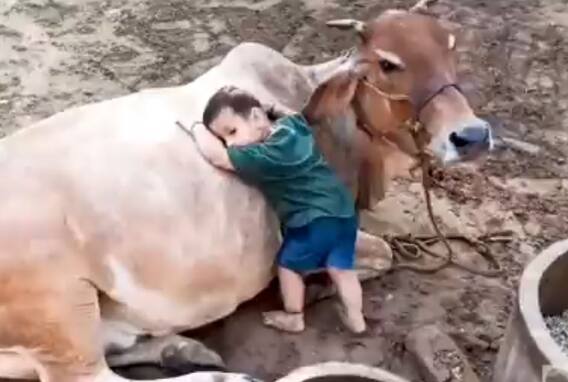 સોશિયલ મીડિયા પર વાયરલ થઈ રહેલા આ વીડિયોમાં તમે એક માસૂમ બાળકને ગાય સાથે રમતા જોઈ શકો છો. આ બાળક એટલો માસૂમ છે કે તે કોઈ પણ ડર રાખ્યા વગર ગાય પાસે રમી રહ્યો છે. વીડિયોમાં એવું પણ જોવા મળે છે કે આ નાનો બાળક ગાયનું મોં જમીન પર સુવડાવી દે છે અને પછી તે બાળક ગળા પર ચઢી જાય છે અને મસ્તી કરે છે. વીડિયો પરથી લાગે છે કે આ બાળકની ઉંમર 2 વર્ષ જેટલી જ હશે.