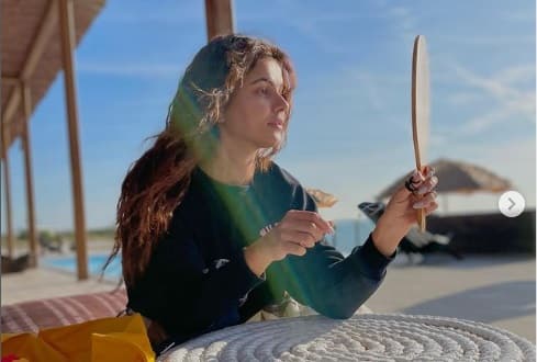 આ આઉફિટની સાથે એક્ટ્રેસે પોતાના વાળોને કસીને જુડો બાંધેલો છે. તસવીર શેર કરતા એક્ટ્રેસે કેપ્શનમાં લખ્યું - હોળીની સાઇડ ઇફેક્ટ્સ.......