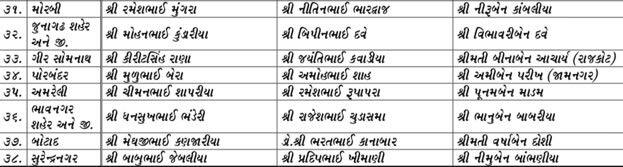 ગાંધીનગર: આગમી વિધાનસભાની ચૂંટણીને ધ્યાનમાં રાખી ઉમેદવારોની પસંદગી માટે ભાજપે નિરીક્ષકોની યાદી જાહેર કરી છે. તમામ જિલ્લામાં ત્રણ ત્રણ નિરીક્ષકોની નિમણૂક કરવામાં આવી છે. ત્રણ નિરીક્ષકોમાં એક મહિલાનો પણ સમાવેશ કરવામાં આવ્યો છે. આગળની સ્લાઈડમાં જુઓ જાહેર કરાયેલા નિરિક્ષકોની યાદી.