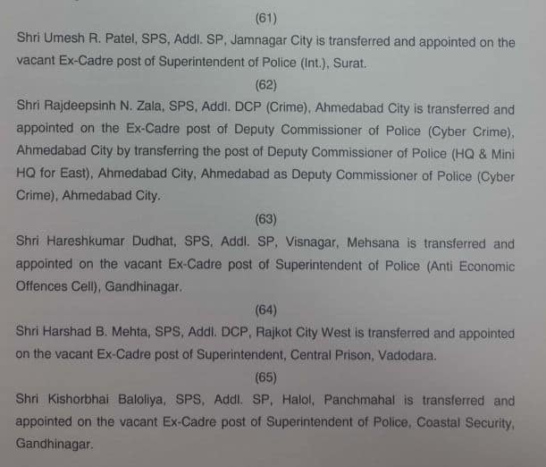 રાજ્યના 66 IPS અધિકારીઓની બદલી, જાણો ક્યા જિલ્લાના પોલીસ વડા બદલાયા?