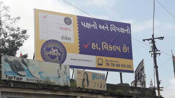 સમગ્ર શહેરમાં શંકરસિંહ પ્રેરિત આ ત્રીજા મોરચાના પોસ્ટર્સ અને બેનરો લાગ્યા છે. તેમજ લોકોને ભાજપ-કોંગ્રેસના વિકલ્પ તરીકે નવા વિકલ્પ સાથે જોડાવા માટે અપીલ કરતા આ બેનરમાં લોકોને સાથે જોડાવા માટે http:www.janvikalp.in અથવા મોબાઈલ નંબર ૭૮૭૮૭૮૯૮૦૦ પર મિસકોલ આપી પોતાને રજિસ્ટર કરાવા અપીલ કરી છે.