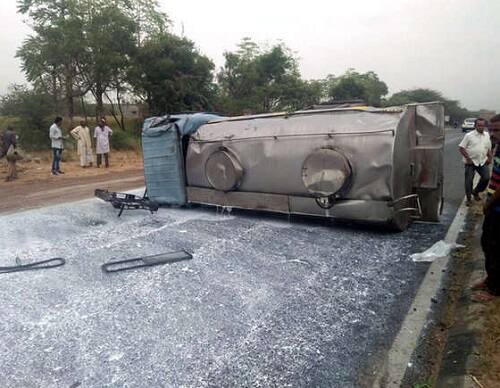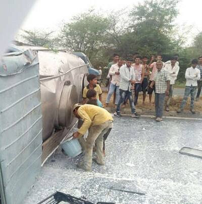 પાલનપુરમાં ટેન્કર પલટ્યું ને લોકોએ આ રીતે કરી પડાપડી, બરણીઓ અને ડોલોથી લોકોએ પીધું દુધ