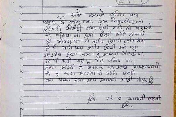 ભુજઃ નલિયા બળાત્કારકાંડને કારણે આખા ગુજરાતમાં ભારે હડકંપ મચી ગયો છે, ત્યારે એબીપી અસ્મિતા પાસે પીડિતાની સૂસાઇડ નોટ આવી છે. આ સૂસાઇડ નોટમાં પીડિતાએ તેના પર કેવી રીતે બળાત્કાર થયો અને તેને કેવી રીતે બ્લેકમેલ કરવામાં આવી તે સંપૂર્ણ વિગત આપી છે. એટલું જ નહીં, તેણે આ સૂસાઇડ નોટમાં શાંતિ સોલંકીએ નલિયાની કેટલીય છોકરીઓને ફસાવી હોવાની વાત પણ કરી છે. આગળની સ્લાઇડમાં વાંચો આખી સૂસાઇડ નોટ.....