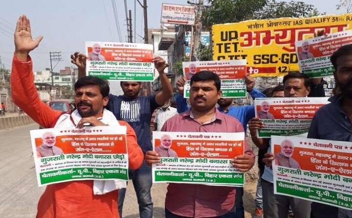યુપી-બિહાર એકતા મંચે પીએમ મોદીના સંસદીય ક્ષેત્ર વારાણસીમાં જંગ-એ-એલાન નામથી પોસ્ટરો લાગ્યા છે. તેમાં લખ્યું છે કે 'ગુજરાતી નરેંદ્ર મોદી બનારસ છોડે'. આ સાથે ગુજરાતી અને મહારાષ્ટના લોકોએ એક અઠવાડીયામાં બનારસ છોડવાની ચેતવણી આપવામાં આવી છે.