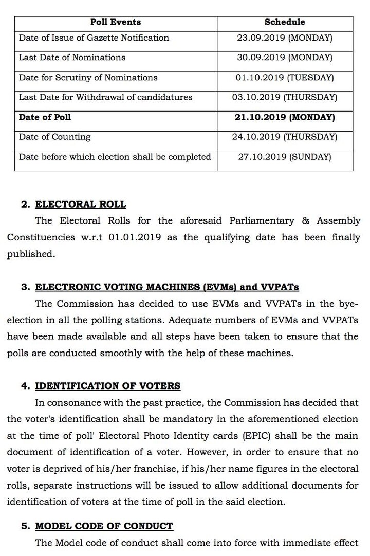 કર્ણાટકરની 15 અને ઉત્તરપ્રદેશની 11 વિધાનસભા બેઠકો પર પેટા ચૂંટણી યોજાશે.