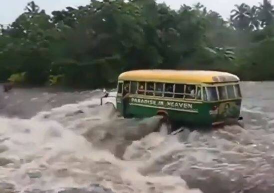 પાણીના જોરદાર પ્રવાહમાં મુસાફરોથી ભરેલી બસ તણાઇ