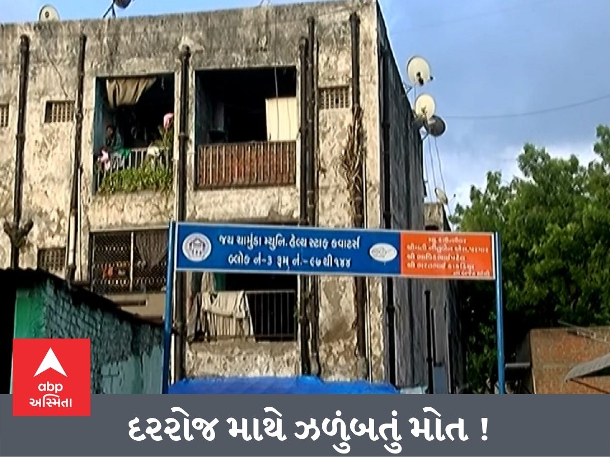 Ahmedabad : અમદાવાદના ચામુંડાનગર વિસ્તારમાં આવેલા AMCના હેલ્થ ક્વાર્ટરમાં રહેતા રહીશો રોજ મોતના ભયનો સામનો કરી રહ્યાં છે. આનું કારણ એ છે કે ચામુંડાનગર વિસ્તારમાં આવેલા AMCના હેલ્થ ક્વાર્ટર હાલ જર્જરિત અવસ્થામાં છે, કારણ કે 60 વર્ષ સુધી કોઈ સમારકામ થયું નથી. અહીં રહેતા 300 જેટલા AMCના સ્ટાફ કર્મચારીઓ પર દરરોજ માથે મોત ઝળુંબી રહ્યું છે.
