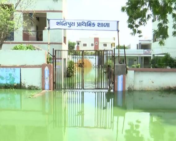 Ahmedabad Rain: ચોમાસાનો વરસાદ ઠેર ઠેર તબાહી મચાવી રહ્યો છે, ઉત્તરથી લઇને દક્ષિણ અને સૌરાષ્ટ્ર-કચ્છમાં સિઝનના પહેલા વરસાદે જ તંત્રની કેટલીય પોલ ખોલી દીધી છે. હાલમાં દયનીય દ્રશ્યો અમદાવાદની એક શાળામાંથી સામે આવ્યા છે. શાંતિપુરા પ્રાથમિક શાળાના બાળકોને ભણવા માટે મુશ્કેલીઓ પડી રહી છે, કેમ કે અહીં આખેઆખી શાળામાં વરસાદી પાણી 2 ફૂટ સુધી ફરી વળ્યા છે. હાલમાં વિદ્યાર્થીઓને રજા અપાઇ છે.