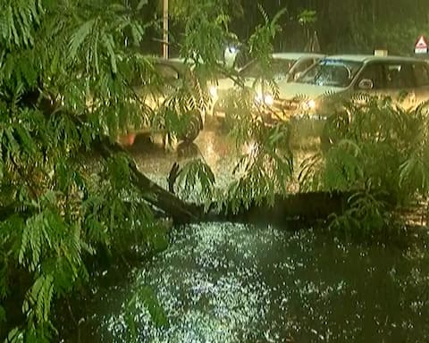 અમદાવાદમાં આજે સાંજે ધોધમાર વરસાદ પડ્યો હતો. વરસાદ વચ્ચે અમદાવાદમાં ઝાડ પડવાના કિસ્સા યથાવત રહ્યા હતા.