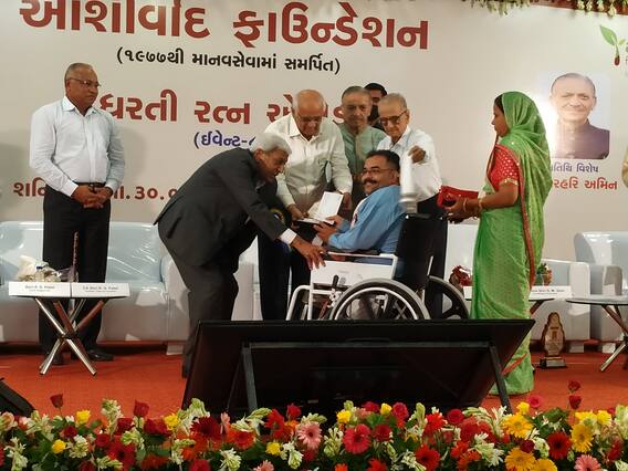 અમદાવાદ: આશીર્વાદ ફાઉન્ડેશન દ્વારા જેઓએ પોતાનું જીવન આર્થિક ઉપાર્જનની આશા વગર માનવ સેવા કે સમાજ સેવામાં જોતરી દીધું હોય તેવા 11 ધરતીરત્નોને ધરતી રત્ન પુરસ્કાર દ્વારા નવાજવાનાં કાર્યક્રમનું આયોજન કરવામાં આવ્યું હતું. આ એવોર્ડ સમારંભ રાજ્યના મુખ્યમંત્રી ભૂપેન્દ્રભાઈ પટેલની અધ્યક્ષતામાં યોજાયો હતો. આ પ્રસંગે ધરતી રત્ન એવોર્ડ – 8ના અતિથિ વિશેષ તરીકે પૂર્વ નાયબ મુખ્યમંત્રી નરહરિ અમીન, મુખ્ય સ્પોન્સર પી. એસ. પટેલ, આશીર્વાદ ફાઉન્ડેશનના સંસ્થાપક સીએ આર. એસ. પટેલ, સહિત ટ્રસ્ટના અગ્રણી હોદ્દેદારો ઉપસ્થિત રહ્યા હતા.