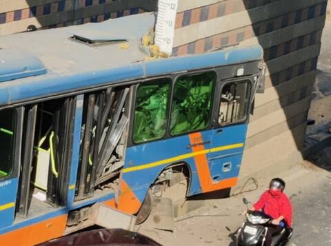 તસવીરઃ અખબારનગર અંડરપાસના થાંભલા સાથે બીઆરટીએસ બસને અકસ્માત નડ્યો છે. બસનો અકસ્માત એટલો ભયંકર હતો કે, અડધી બસ વચ્ચેથી ચિરાઇ ગઈ છે.