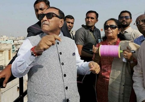 ઉત્તરાયણ પર પતંગ ચગાવી રહેલા મુખ્યમંત્રી વિજય રૂપાણીની ફાઇલ તસવીર.