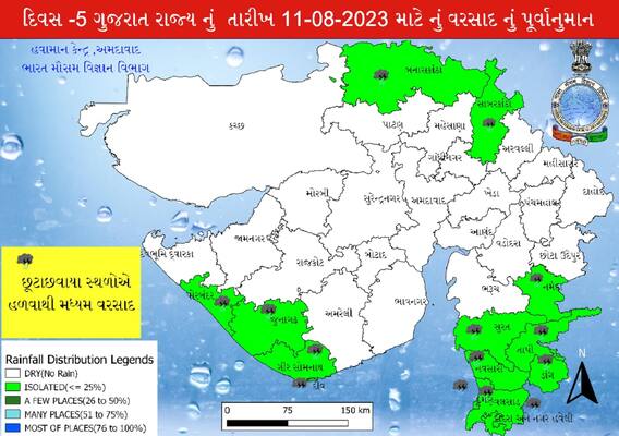 Gujarat Monsoon: રાજ્યના વાતાવરણ અંગે હવામાન વિભાગે આગાહી કરી છે. હવામાન વિભાગના ડાયરેકટર મનોરમા મોહંતીના જણાવ્યા મુજબ, રાજ્યમાં હાલ કોઈ વરસાદી સિસ્ટમ સક્રિય નહીં હોવાથી વરસાદ પડવાની શક્યતા નહીંવત છે. રાજ્યમાં હળવાથી મધ્યમ વરસાદની સંભાવના છે. દરિયાકાંઠાના વિસ્તારમાં ભારે પવન ફૂંકાશે, માછીમારોને આગામી 5 દિવસ દરિયો ન ખેડવા સૂચના છે. ચોમાસુ 30 સપ્ટેમ્બર સુધી રહેશે, જેથી છૂટોછવાયો વરસાદ પડશે. નવી વરસાદી સિસ્ટમ બનશે તો ભારે વરસાદ પડશે . અમદાવાદ અને ગાંધીનગરમાં પણ છૂટાછવાયા વરસાદની આગાહી છે.