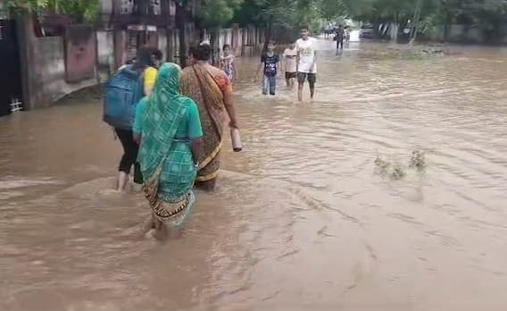 Bhavnagar Rain: ભાવનગર શહેરમાં વરસેલા મુશળધાર વરસાદને લઈને અનેક સોસાયટીઓ પાણીમાં ગરકાવ થઈ છે. શહેરના સીદસર રોડ પાસે આવેલી અનેક સોસાયટીઓમાં ઘૂંટણસમા પાણી ભરાયા છે. સીદસર રોડ પાસે આવેલ તુલસી પાર્ક 2માં 120 જેટલા મકાનોના રહીશોને સોસાયટીની બહાર નીકળવા માટે પાણી ઉતરે તેની રાહ જોવી પડે છે. માત્ર નજીવા વરસાદને લઈને સોસાયટીમાં પાણી ભરાય છે.જેના લીધે વિદ્યાર્થીઓ તેમજ સોસાયટીમાં રહેતા લોકોને ભારે હાલાકી પડી રહી છે. તુલસી પાર્ક 2માં નજીવા વરસાદે ઘૂંટણસમા પાણી ભરાતા સ્થાનિકોમાં રોષ જોવા મળ્યો છે.