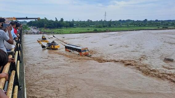 Rain Uttarakhand: ભારે વરસાદને કારણે મેદાની વિસ્તારોમાં નદીઓના જળસ્તરમાં વધારો થયો છે. શનિવારે હરિદ્વારના લાલધાંગમાં કોટા નદીમાં ઘોડાપુર આવ્યું હતું. આ દરમિયાન ઉત્તર પ્રદેશ ટ્રાન્સપોર્ટની મુસાફરોથી ભરેલી બસ નદીની વચ્ચે ફસાઈ ગઈ છે. હાલમાં ક્રેનની મદદથી નદીમાં જ બસને રોકી દેવામાં આવી છે. બસમાં 70 જેટલા મુસાફરો છે.