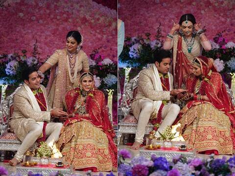મુંબઈ: શનિવારે દેશના સૌથી શ્રીમંત અને વિશ્વના છઠ્ઠા ક્રમના અમીર બિઝનેસમેન મુકેશ અંબાણીના પુત્ર આકાશ અંબાણી અને શ્લોકા મહેતા લગ્રનગ્રંથીથી જોડાયા હતાં. આ પ્રસંગે વિવિધ ક્ષેત્રની અનેક હસ્તીઓ પહોંચી હતી. મુકેશ અંબાણીના નિવાસ સ્થાન એન્ટિનિયાને ફૂલો અને રંગબેરંગી રોશનીથી સજાવવામાં આવ્યું હતું. આકાશ અને શ્લોકાના લગ્ન જિયો વર્લ્ડ સેન્ટર ખાતે યોજાયા હતા. જોકે બધી વિધિ શરૂ થતાં અગાઉ આકાશે તેના દાદા ધીરુભાઈ અંબાણી અને નાનાને શ્રદ્ધાંજલિ આપી હતી. આકાશની જાન એન્ટિલિયાથી બપોરે નીકળી હતી તે સમયે મુકેશ અંબાણી અને તેમનાં પત્ની નીતા અંબાણી પણ અન્ય લોકો સાથે વરઘોડામાં મન મૂકીને નાચ્યાં હતાં. જેની તસવીરો સોશિયલ મીડિયામાં વાયરલ થઈ છે. જુલાઈ 2018માં આકાશ અંબાણી અને શ્લોકા મહેતાની સગાઈ થઈ હતી. શ્લોકાના પિતા રસેલ મહેતાનો ડાયમંડ બિઝનેસ છે. ઈશા પિરમાલએ ભાઈ આકાશના લગ્નમાં લૂણ ખખડાવતી જોવા મળી હતી. આ જોઈને સૌ મહેમાનો કૂતુહલ ફેલાઈ ગયું હતું અને આ તસવીરો સોશિયલ મીડિયામાં વાયરલ થઈ હતી. આકાશ અંબાણીની જાનમાં માતા નીતા અંબાણી સહિત જાનૈયાઓ મન મૂકીને ડાન્સ કરી રહ્યા હતા જ્યારે શાહરૂખ ખાન પણ નીતા અંબાણી જોડે ડાન્સ કરતો જોવા મળ્યો હતો. આકાશ અંબાણીના જમણા હાથ પર બંધાયેલું મીંઢળ સૌનું ધ્યાન ખેંચતું હતું. મીંઢળનું સોપારી જેવડું ફળ લગ્નમાં માણેકસ્તંભ સ્થાપીને તથા વરરાજાના હાથે બાંધવામાં આવે છે. મીંઢળને મદન ફળ પણ કહે છે. લગ્ન લેવાય તે દિવસથી મીંઢળ બંધાય છે, જે લગ્ન બાદ છોડવાની પ્રથા છે.