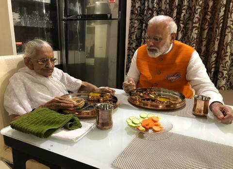 પીએમ મોદીએ રાયસણમાં માતા હીરાબા સાથે બપોરનુ ભોજન લીધુ, ગુજરાતી વાનગીઓ જમ્યા