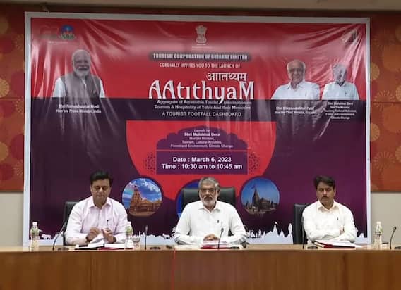ગાંધીનગર: પ્રવાસન ક્ષેત્રને વધુ વેગ આપવા ગુજરાત સરકારે નવતર પહેલ કરી છે. સ્થાનિક –આંતરરાષ્ટ્રીય પ્રવાસીઓના રિયલ ટાઈમ ડેટા માટે ‘આતિથ્યમ’ ડેશબોર્ડનું લોન્ચિંગ કરવામાં આવ્યું છે. પ્રવાસન ક્ષેત્રના વિકાસ થકી વધુ રોજગારી ઉપલબ્ધ કરાવવા સ્થાનિક અને આંતરરાષ્ટ્રીય પ્રવાસીઓના રિયલ ટાઈમ ડેટા માટે ‘આતિથ્યમ’ ડેશબોર્ડનું લોન્ચિંગ કરનાર ગુજરાત એ ભારતનું પ્રથમ રાજ્ય બન્યું છે તેમ, આજે ગાંધીનગરથી ‘આતિથ્યમ’ ડેશબોર્ડનું લોન્ચિંગ પ્રવાસન મંત્રી મુળુભાઈ બેરાએ કર્યું હતું.