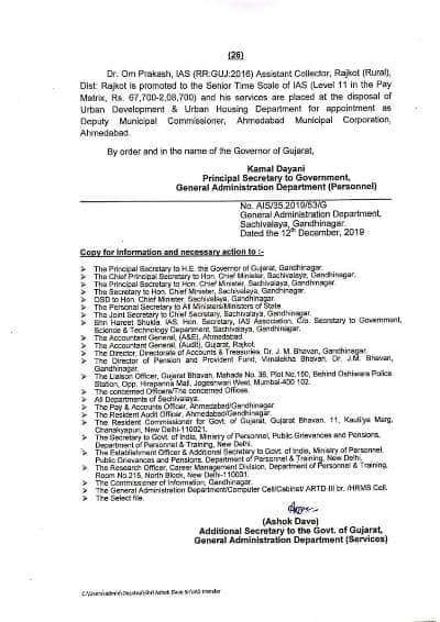 ગાંધીનગરઃ રાજ્યના 26 IAS અધિકારીઓની બદલી કરાઈ