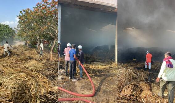 સુરેન્દ્રનગર: ધ્રાંગધ્રાના જેગડવા પાસે આવેલ વડવાળા મંદીરની ગૌશાળામાં ઘાસના ડેપોમાં આગ લાગી છે. ભીષણ આગના કારણે એક કરોડથી વધુનું નુકસાન થયું હોવાની માહિતી સામે આવી છે. ઘટનાની જાણ થતા ધ્રાંગધ્રા નગરપાલિકાના ત્રણ ફાયર ફાઇટર ઘટના સ્થળે દોડી ગયા છે અને આગ બુજાવવાની કામગીરી શરુ કરવામાં આવી છે. આગના કારણે અફરા તફરીનો માહોલ સર્જાયો હતો.