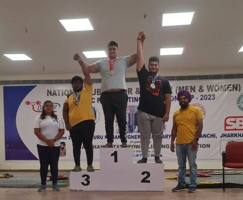 જૂનાગઢ: નેશનલ પાવર લિફટીંગ કોમ્પિટિશન તારીખ 6 જૂન થી 11 જૂન રાંચી (ઝારખંડ) ખાતે યોજાઈ હતી. જેમાં ગુજરાતમાં યોજાયેલી કોમ્પિટિશનમાં ગોલ્ડ મેડલ જીતી પ્રથમ આવેલ જૂનાગઢના અર્જૂન ધડુકને નેશનલ સ્પર્ધામાં ભાગ લેવા માટેની અમુલ્ય તક મળી છે. અર્જુને ત્રણ સિલ્વર મેડલ અને એક બ્રોન્ઝ મેડલ મેળવ્યો છે અને નેશનલ સ્પર્ધામાં દેશમાં બીજા નંબરનું સ્થાન પ્રાપ્ત કરી સમગ્ર ગુજરાતને ગૌરવ અપાવ્યું છે. જૂનાગઢ માટે ખૂબ જ ગૌરવ ગણી શકાય.