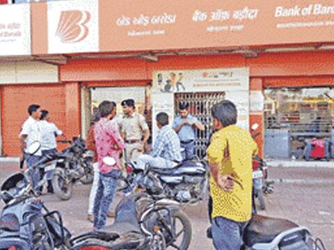 રાજકોટ: મોરબીની બેંક ઓફ બરોડામાં પિસ્તોલ જેવા ઘાતક હથિયારો સાથે લુંટારા ત્રાટક્યા હતા અને બેંકને કેશીયરને માર મારી કુલ 6.09 લાખની રોકડની લૂંટ ચલાવી હતી. ઘાતક હથિયારો સાથે આવેલા લુંટારાએ પાંચથી સાત મીનિટમાં બેંકમાં ફિલ્મી ઢબે આતંક મચાવ્યો હતો અને ત્યાર બાદ સ્વીફ્ટ કારમાં બેસીને ફરાર થઈ ગયા હતાં. જોકે હળવદના ચુપણી ગામની સીમમાં આવેલ મકાઈના ખેતરમાંથી ગ્રામજનોના સહકારથી પોલીસને હાથ ખૂંખાર ચાર લુંટારા ઝડપી લેવામાં સફળતા મળી હતી. મોરબીના મહેન્દ્રનગર ખાતે આવેલ બેંક ઓફ બરોડા બેંકમાં મોઢે રૂમાલ બાંધેલ અને પિસ્તોલથી સજજ છ જેટલા શખ્સો અંદર ઘુસ્યા હતા અને આ ગુનેગારોએ બેંકમાં હાજર ગ્રાહકોના ચાર જેટલા મોબાઈલ ઝુંટવી લીધા હતા. ત્યાર બાદ સિક્યુરિટી ગાર્ડને માર મારી તેની ગન પણ પડાવી લીધી બાદમાં બેંકના કેશિયર અને આ જ બેંકમાં બેસતી દેનાબેંકના કેશિયરને માર મારી તેમની પાસેથી 6.09 લાખની રોકડની લુંટ ચલાવી હતી અને બાદમાં બહાર રહેલ સ્વીફ્ટ કારમાં હળવદ તરફ ભાગી ગયા હતાં. આ ઘટનાની જાણ થતાં જ મોરબી પોલીસનો કાફલો ઘટનાસ્થળે દોડી આવ્યો હતો. ત્યાર બાદ સમગ્ર જિલ્લામાં એલર્ટ કરીને નાકાબંધી કરીને દેવામાં આવી હતી. આ ઉપરાંત હળવદ અને માળિયાના ગામડાંઓને પણ એલર્ટ કરી દેવામાં આવ્યાં હતાં. જોકે બાતમી મળતાં આ લુંટારા હળવદના ચુપણી ગામ નજીક ખેતરમાં ગ્રામજનો વચ્ચે ફસાઈ ગયા હતાં. પોલીસને જાણ કરતાં જ પોલીસ ચુપણી ગામે પહોંચી હતી અને સમગ્ર વિસ્તારને કોર્ડન કરીને મકાઈના ખેતરમાં સંતાઈ ગયેલા આરોપીઓને ઝડપી પાડ્યાં હતાં. પોલીસે ગ્રામજનોની મદદ સાથે 6માંથી 4 જેટલા આરોપીને બે પિસ્તોલ અને એક બંદુક સાથે ઝડપી લીધા હતા જ્યારે બે ફરાર છૂટ્યા હતા. જોકે મહત્વની વાત એ છે કે બેંકમાંથી લુંટવામાં આવેલ 6.10 લાખની રકમ ભરેલ બેગ પણ મળી આવી હતી.