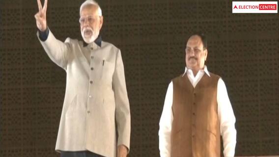 Gujarat Assembly Election 2022: ગુજરાતમાં પ્રચંડ જીત બાદ બીજેપી હેડક્વાર્ટર પહોંચ્યા ગૃહમંત્રી અમિત શાહ અને પીએમ મોદી