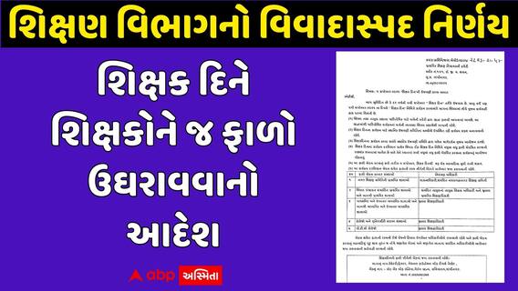 Gujarat Education Department decision: ગુજરાત રાજ્યના શિક્ષણ વિભાગે શિક્ષક દિનની ઉજવણી માટે એક અસામાન્ય અને વિવાદાસ્પદ નિર્ણય લીધો છે. વિભાગે રાજ્યની તમામ સરકારી અને ખાનગી શાળાઓ, કોલેજો અને યુનિવર્સિટીના શિક્ષકોને જ આ ઉજવણી માટે ફાળો એકત્ર કરવાનું કામ સોંપ્યું છે. આ નિર્ણયથી સમગ્ર શિક્ષણ જગતમાં ભારે રોષ ફેલાયો છે. શિક્ષકોનું કહેવું છે કે આ પ્રકારના આદેશથી તેમના ગૌરવને ઠેસ પહોંચે છે અને તેમને તેમના મુખ્ય કાર્ય - શિક્ષણ આપવાથી વિમુખ કરવામાં આવી રહ્યા છે. આ ફાળો ઉદ્યોગપતિઓ અને ઉદ્યોગો પાસેથી પણ એકત્ર કરવાનો આદેશ આપવામાં આવ્યો છે.