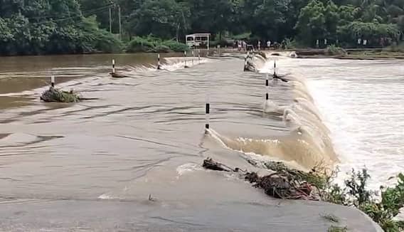 જૂનાગઢ: જૂનાગઢ જિલ્લાના માંગરોળમાં આજે વહેલી સવારથી જ ભારે વરસાદ વરસી રહ્યો છે. માંગરોળમાં ધોધમાર વરસાદને કારણે કોઝવે બંધ કરવામાં આવ્યો છે. કોઝવે પર પાણી ફરી વળ્યા હતા. નોળી નદીમાં ઘોડાપૂર આવ્યું હતું. માળીયા નજીક કામનાથ મહાદેવ તરફનો રસ્તો બંધ થયો હતો. કોઝવે પર વાહનોની અવરજવર પણ બંધ કરવામાં આવી છે. કોઝવેની બંને બાજુએ બેરીકેટ લગાવાયા છે. પોલીસ બંદોબસ્ત ગોઠવવામાં આવ્યો હતો. ધારાસભ્ય ભગવાનજી કરગટીયાએ પણ કોઝવેની મુલાકાત કરી હતી.