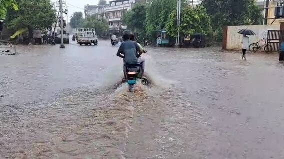 પાટણ: પાટણ શહેર અને જિલ્લામાં ધોધમાર વરસાદ વરસ્યો છે. વહેલી સવારે પાટણ શહેરમાં મેઘરાજા મન મૂકીને વરસ્યા હતા. ભારે વરસાદના પગલે નીચાણવાળા વિસ્તારોમાં પાણી ભરાયા હતા. મુખ્ય માર્ગો પર નદીની જેમ પાણી વહેતા થયા હતા. પારેવા સર્કલ નજીક ઘૂંટણસમા પાણી ભરાયા હતા. જેના કારણે રાહદારીઓ અને વાહનચાલકોને મુશ્કેલીનો સામનો કરવો પડયો હતો.