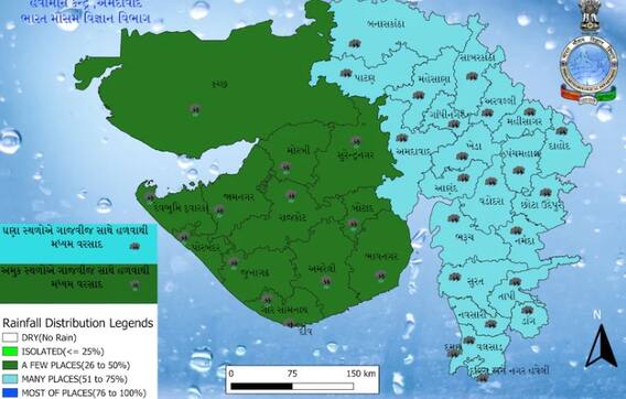 અત્યારે રાજ્યમાં સિઝનનો સરેરાશ 62.44 ટકા વરસાદ વરસી ચૂક્યો છે. જેમાં સૌરાષ્ટ્રમાં આ સિઝનનો 55 ટકા વરસાદ વરસ્યો છે, જ્યારે કચ્છ ઝૉનમાં સિઝનનો 64.17 ટકા વરસાદ, દક્ષિણ ગુજરાતમાં સરેરાશ 65.70 ટકા વરસાદ અને ઉત્તર ગુજરાતમાં સરેરાશ 65.17 ટકા વરસાદ વરસી ચૂક્યો છે. આ વહેલા વરસાદના કારણે ખેડૂતોમાં કહી ખુશી કહી ગમ જેવો માહોલ છે.