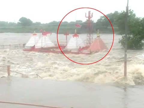 છેલ્લા ત્રણ-ચાર દિવસથી ગુજરાતમાં વરસાદી માહોલ જામ્યો છે ત્યારે છેલ્લા ત્રણ દિવસથી સૌરાષ્ટ્રના દેવભૂમિ દ્વારકા અને જામનગર જિલ્લામાં ધોધમાર વરસાદ વરસી રહ્યો છે જેને કારણે જ્યાં જુઓ તયાં પાણી જ પાણી જોવા મળી રહ્યું છે. દ્વારકા જિલ્લાના જામખંભાળિયામાં રવિવારે 20 ઈંચ વરસાદ ખાબક્યો હતો જ્યારે જામનગર જિલ્લામાં કાલાવડમાં સોમવારે 12 ઈંચ વરસાદ ખાબક્યો હતો જેને લઈને નદી-નાળા છલકાઈ ગયા હતાં. દેવભૂમિ દ્વારકા અને જામનગર જિલ્લામાં ભારે વરસાદથી ખેડૂતોમાં ખુશી જોવા મળી છે. ભારે વરસાદને કારણે નદીઓ બે કાંઠે વહેતી થઈ હતી જેને જોવા માટે લોકો ઉમટી પડ્યા હતાં. ભારે વરસાદથી નદીમાં નવા નીરની આવક થઈ રહી છે જેના કારણે સૌરાષ્ટ્રના મોટા ભાગના ડેમો ઓવરફ્લો થઈ ગયા હતાં. મહત્વની વાત છે કે, જામનગર જિલ્લાના દરેડ નજીક આવેલા ખોડિયાર માતાજીનું મંદિર સંપૂર્ણ પાણીમાં ગરકાવ થઈ ગયું હતું. જેને જોવા માટે લોકો દોડી આવ્યા હતા. ઉપરવાસમાં ભારે વરસાદને કારણે મંદિરની માત્ર ધજા જોવા મળી રહી હતી. જ્યારે મંદિરની આસપાસ પાણીના ધોધ વહી રહ્યાં છે. ખોડિયાર મંદિરની આજુબાજુ પાણી ધસમસતો પ્રવાહ વહી રહ્યો છે જેના દ્રશ્યો સામે આવ્યા હતાં. મંદિર પાણીમાં ગરકાવ થતાં જ આસપાસના લોકો દોડી આવ્યા હતા અને વીડિયો અને ફોટો પોતાના મોબાઈલમાં કેદ કરી રહ્યા હતાં જે હાલ સોશિયલ મીડિયામાં વાયરલ થયા છે.