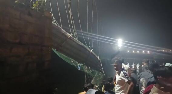 ગુજરાતના મોરબીમાં રવિવારે લટકતો બ્રિજ ધરાશાયી થયો હતો, જેના કારણે બ્રિજ પરના 500 જેટલા લોકો નદીમાં પડ્યા હતા. આ અકસ્માતમાં અત્યાર સુધીમાં 70થી વધુ લોકોના મોત થયા છે. તે જ સમયે, આ અકસ્માતમાં તરવું જાણતા કેટલાક લોકો નદીમાં તરીને બહાર આવ્યા હતા. આ લોકોએ માત્ર સ્વિમિંગ કરીને પોતાનો જીવ તો બચાવ્યો પરંતુ અન્ય ઘણા લોકોના જીવ પણ બચાવ્યા જેમને તરવાનું આવડતું ન હતું. આ દુર્ઘટના બાદ લોકો નદીમાંથી તરીને બહાર આવતા હોવાનો વીડિયો પણ સોશિયલ મીડિયા પર વાયરલ થઈ રહ્યો છે. ન્યૂઝ એજન્સી ANIએ તેના સોશિયલ મીડિયાના ટ્વિટર પ્લેટફોર્મ પરથી અકસ્માત બાદ આ વીડિયો જાહેર કર્યો છે. આ અકસ્માત રવિવારે સાંજે લગભગ સાત વાગ્યે થયો હતો. મચ્છુ નદી પર નવનિર્મિત કેબલ બ્રિજ ત્રણ દિવસ પહેલા ખુલ્લો મુકાયો હતો. આ અકસ્માત દરમિયાન છઠની પૂજા માટે બ્રિજ ઉપર લોકો હાજર હતા. કહેવામાં આવી રહ્યું છે કે ત્રણ દિવસ પહેલા જ આ સ્વિંગ બ્રિજને લોકો માટે ખુલ્લો મુકવામાં આવ્યો હતો.