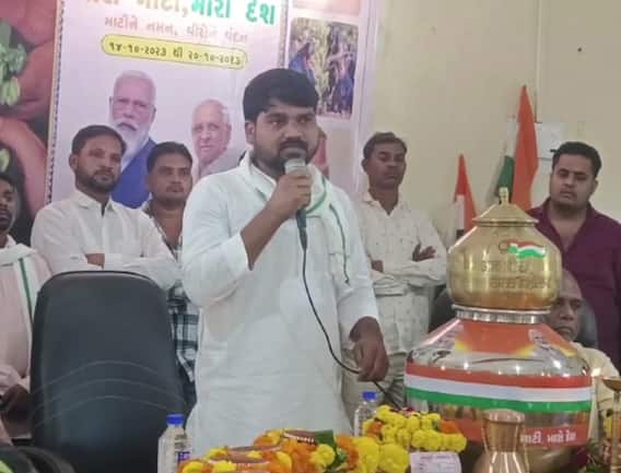 નર્મદા: ડેડીયાપાડા ખાતે મારી માટી મારો દેશ કાર્યક્રમમાં સાંસદ મનસુખ વસાવા અને આપના ધારસભ્ય ચૈતર વસાવા એક મંચ પર જોવા મળ્યા હતા. આ દરમિયાન ચૈતર વસાવાએ રાજ્ય સરકાર અને કેન્દ્ર સરકાર પર આકરા પ્રહારો કર્યા હતા. ચૈતર વસાવા જયારે રાજ્ય સરકાર અને કેન્દ્ર સરકાર વિશે બોલતા હતા ત્યારે સાંસદ મનસુખ વસાવાએ તેમને ટોકયા હતા. મનસુખ વસાવાએ વચ્ચે ટોકતા કહ્યું કે, આજના વિષય પર વાત કરો વિષયથી ભટકશો નહિ.