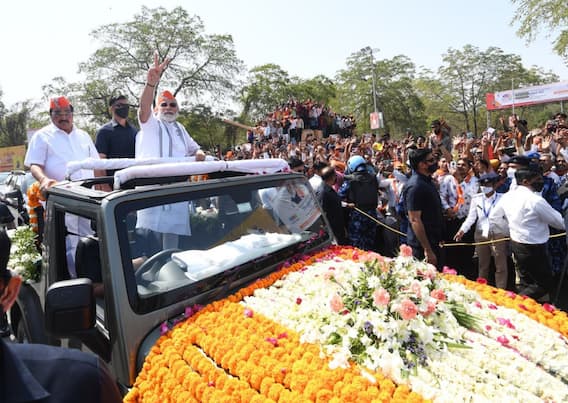 પીએમ મોદીનો એરપોર્ટ પરથી રોડ શો શરુ થઈ ગયો છે. પીએમ મોદીની સાથે મુખ્યમંત્રી ભુપેન્દ્ર પટેલ અને પ્રદેશ અધ્યક્ષ સી. આર પાટીલ પણ પીએમ મોદીની ગાડીમાં સવાર છે.