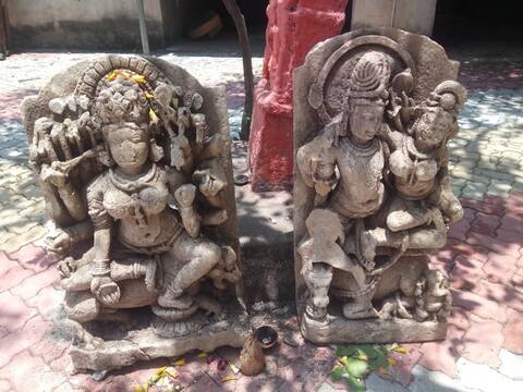બુધેચા ગામની નદીમાં ખોદકામ દરમિયાન બે મૂર્તિઓ મળી આવી છે. 200 કિલોના વજનવાળી શિવ દરબાર અને માતાજીની બે મુર્તી મળી આવી છે.