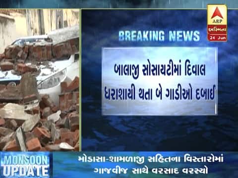 અરવલ્લીનાં મોડાસામાં વરસાદને કારણે દીવાલ ધરાશાઈ થતાં પાર્ક કરેલી બે કાર દટાઈ ગઈ હતી. દીવાલ ધરાશાઈ થતાં બાલાજી સોસાયટીનો રસ્તો બંધ થઈ ગયો હતો.