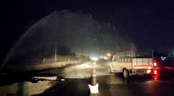 ખંભાળીયાઃ દ્વારકા જામનગર હાઇવે પર પાણીની લાઇનમાં ભંગાણ વગર સિઝને વરસાદી દ્રશ્યો સર્જાયા હતા. ખંભાળિયા નજીક પીવાના મુખ્ય પાણીની લાઇનમાં ભંગાણ થયું છે. પીવાના પાણીની લાઇનમાં ભંગાણ પડતાં પાણીનાં ફુવારા છુટયા હતા. પાણીના ફુવારાથી રસ્તા પર ચોતરફ પાણી જ પાણી જોવા મળ્યું. ભંગાણના લીધે મોટી માત્રામાં પાણીનો બગાડ થયો.