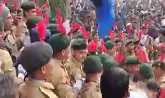 AMU Controversy: અલીગઢ મુસ્લિમ યુનિવર્સિટી (Aligarh Muslim University) ની બહાર ગણતંત્ર દિવસની ઉજવણી દરમિયાન નેશનલ કેડેટ કોર્પ્સ (NCC) યુનિફોર્મ પહેરેલા કેટલાક વિદ્યાર્થીઓનો એક વીડિયો સોશિયલ મીડિયા પર વાયરલ થઈ રહ્યો છે. આ વીડિયોમાં વિદ્યાર્થીઓ અલ્લાહ હુ અકબરના નારા લગાવતા જોવા મળે છે. સૂત્રોના જણાવ્યા અનુસાર જ્યારે આ ધાર્મિક સૂત્રોચ્ચાર કરવામાં આવ્યા ત્યારે યુનિવર્સિટીના વીસી પણ ત્યાં હાજર હતા.