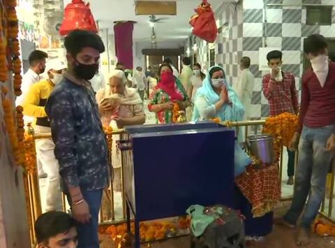 અમૃતસરના ભદ્રકાળી મંદિરમાં સોમવારે કેટલાક ભક્તો દર્શન કરવા આવ્યા હતા. તેમણે પૂજા કરી અને આરતીમાં ભાગ લીધો હતો.