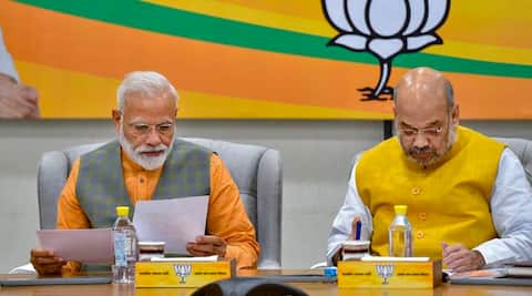 New Delhi: Prime Minister Narendra Modi and BJP National President Amit Shah during the BJP Central Election Committee (CEC) meeting for the upcoming Lok Sabha elections, at BJP headquarters in New Delhi, Friday, March 22, 2019. (PTI Photo/Kamal Kishore) (PTI3_22_2019_000189B)
