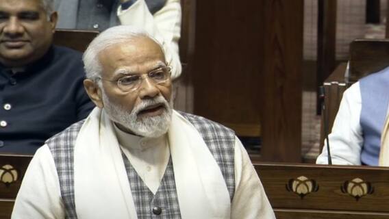 PM Modi in Rajya Sabha: PM નરેન્દ્ર મોદીએ બુધવારે (7 ફેબ્રુઆરી) રાજ્યસભામાં સંસદના બજેટ સત્રની શરૂઆતમાં રાષ્ટ્રપતિ દ્રૌપદી મુર્મુના સંબોધનનો જવાબ આપ્યો. તેમણે પહેલા કોંગ્રેસ અધ્યક્ષ મલ્લિકાર્જુન ખડગેનો વિશેષ આભાર વ્યક્ત કર્યો અને પછી કોંગ્રેસ પર પ્રહારો કર્યા.